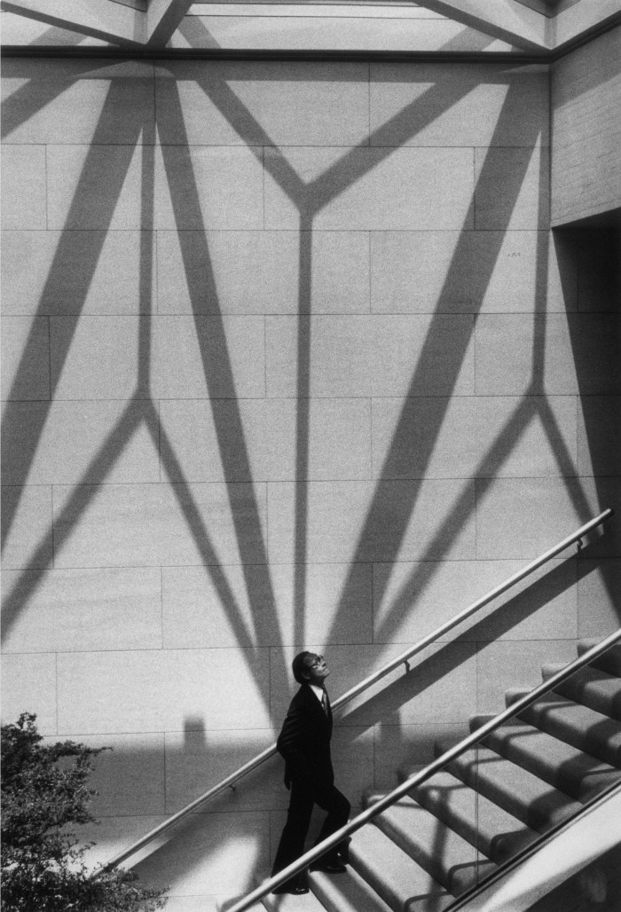 貝聿銘走在華盛頓特區國家美術館東館的樓梯上