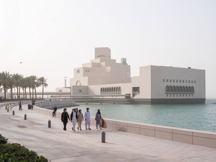從海濱長廊望向伊斯蘭藝術博物館(2000–2008),多哈 2021 年