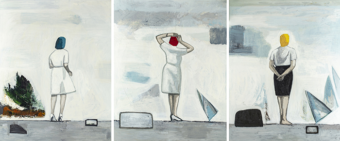 劉曉輝,《海邊戴頭巾的三個動作》,2020年,布面油畫,250×600 cm