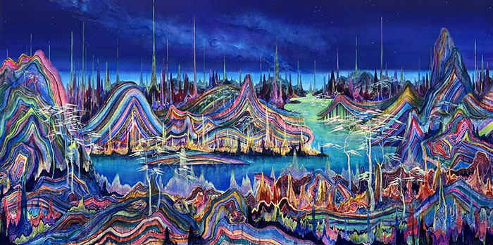 黃宇興,《星漢燦爛》,2027–2021年,布面油畫,200×400 cm