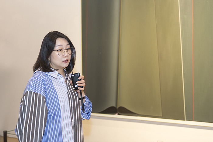 展覽現場,執行策展人袁佳維為嘉賓導覽