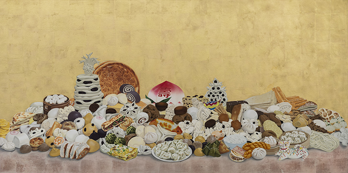 陳飛,《主食》,2019年,金箔、丙烯,100×200 cm