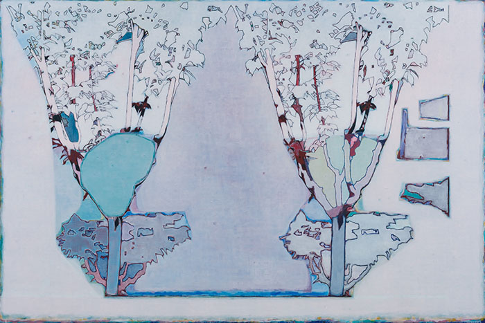 唐永祥,《兩棵樹左邊樹上有顆綠色》,2020年,布面油畫,200×300 cm