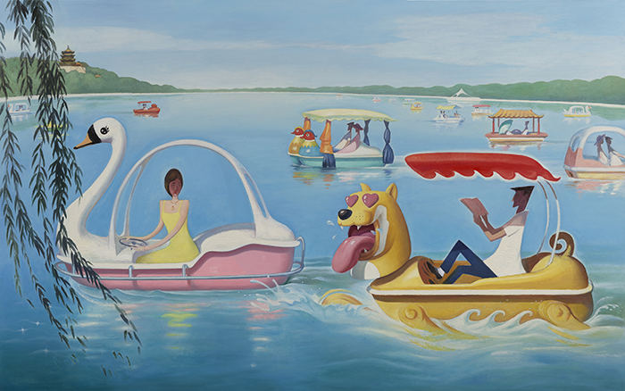 王興偉,《新劃船》,2022年,布面油畫,200×320cm