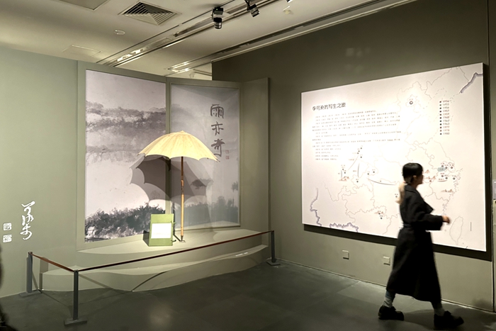 展覽現場復原了李可染寫生的遮陽傘與畫夾 攝影/許柏成