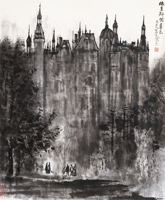李可染《德累斯頓暮色》53.5x44cm 1957年 水墨紙本
