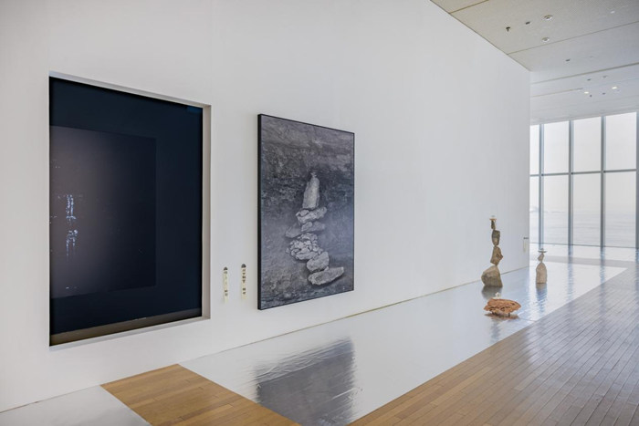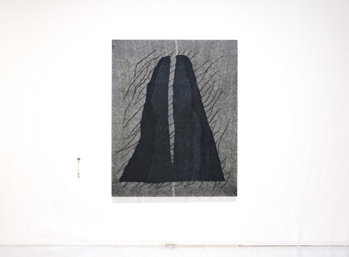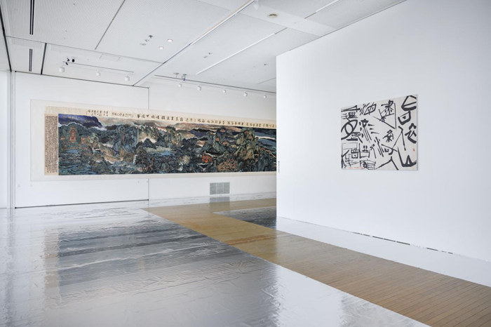 展覽入口處以日本具體美術協會成員藝術家前川強的作品為引,開門見“青山”。前川強慣以繪畫的物質性為手段,剛柔轉換之間,細窄“水路”將堅固“山形”一分為二,山水之路、山海之途由此漸次展開。