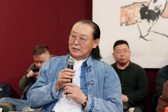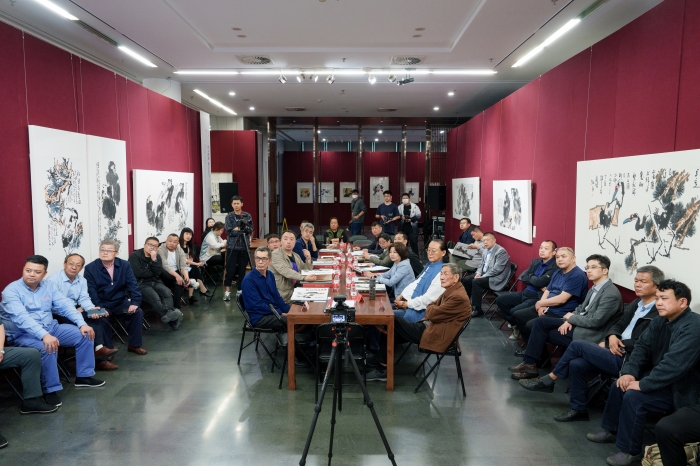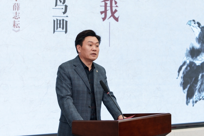 當天下午,“無我之我——薛志耘大寫意花鳥作品展”學術研討會在人美美術館舉行。學術研討會由中國美術館修復部副主任、研究館員鄧鋒主持,人民美術出版社副總編輯王遠,中國國家畫院理論研究所所長陳明,中國藝術研究院美術研究所研究員孔德平,中國美術館收藏部主任朱劍,中央美術學院研究生院書記兼教學部主任葛玉君,北京畫院美術館館長薛良,首都師范大學美術學院教授張鵬,恭王府博物館副研究員周望,藝術中國主編許柏成,安徽省書畫院常務副院長陳明哲,安徽中國畫學會副主席、安徽省美學學會會長陳祥明,宿州市散文家協會主席、原宿州市作家協會副主席馮亞,廣東南方電影工程技術研究院副院長汪廷,中央文史館書畫院研究員、安徽省文史研究館館員、原宿州市美術家協會主席陳光林,蕭龍士藝術研究會名譽會長蕭承震等美術理論學者與藝術家圍繞薛志耘的藝術成就、中國大寫意花鳥畫的特質與教育模式等問題進行了深入探討。