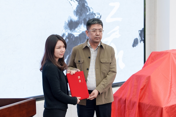 人美美術館館長助理劉露向薛志耘次子薛勇頒發收藏證書