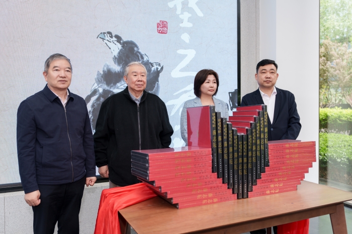 由人民美術出版社策劃編輯出版的《中國近現代名家畫集》《中國當代名家畫集》和《中國現當代名家畫集》代表著現當代中國繪畫的最高水平,在業內享有盛譽,被賦予“大紅袍”的稱號,出版《中國現當代名家畫集》是薛志耘先生生前的夙愿?!吨袊F當代名家畫集——薛志耘》歷時九年編撰,共收錄薛志耘先生作品近200幅,同時收錄劉開渠、邵大箴、薛永年先生的評論文章。新書首發式上,任啟亮、郭瑞、王遠、楊洪軍共同為《中國現當代名家畫集——薛志耘》新書揭幕。