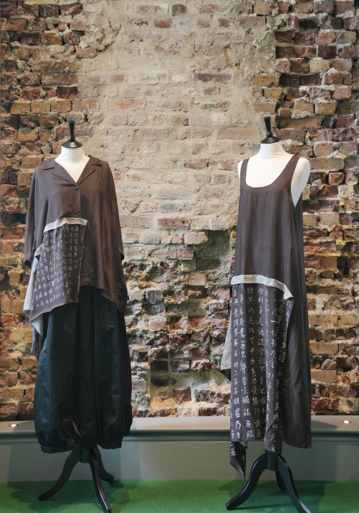 展覽展示的以中國文字為創作靈感的服裝《心經》(設計師 班曉雪)