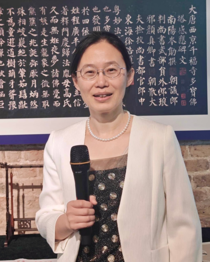 英國漢學家、英中了解協會理事吳芳思博士(Dr.Frances Wood)在致辭中表示,中華文明歷史悠久,博大精深。漢字在中華歷史文化的傳承發展中扮演著極為重要的角色。她特別提到,本次展品中有《金剛經》中一頁的復刻,這是世界上第一本有確切日期的印刷書籍,印于公元868年,現存大英圖書館。展覽中雕版印刷的部分也展示了宋體和唐風漢字不同的風格,她希望更多英國觀眾能觀看這個展覽,了解這一有史以來最古老迷人的技術。