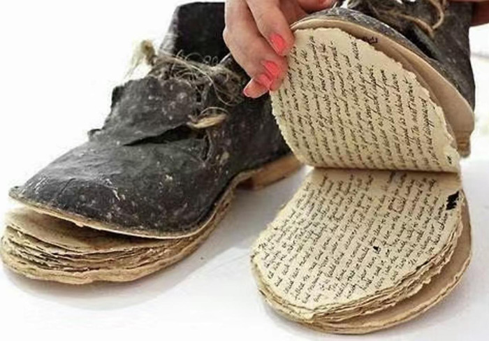 藝術家Magdalena Haras摘錄了Slawomir Rawicz 的《長途跋涉》(The long Walk),使文學作品成為鞋的一部分,用以暗指藏在鞋底的秘密信息。引用的詩文內容和手工書的形體互相援引,互相解釋,在更多維度上給予觀者信息,調動視覺、觸覺、感覺,成為立體化感知的巧妙支點。