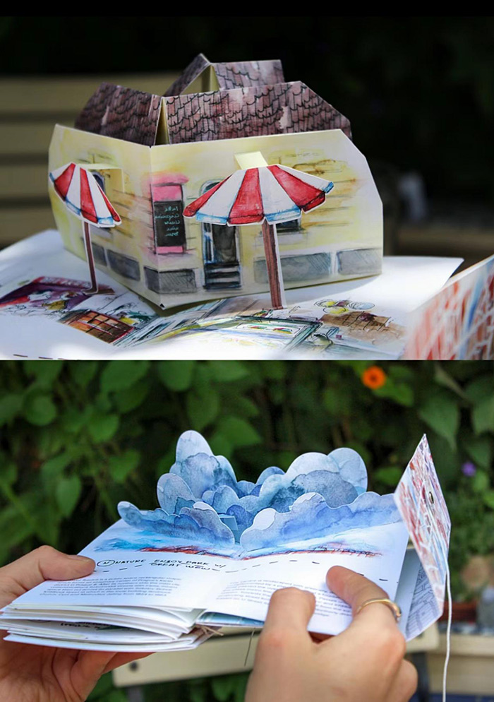 一些手工書設計了互動元素,使讀者能夠參與其中,提高閱讀的參與感和趣味性。藝術家leva Ozola將布拉格的旅游指南設計成互動式立體書的樣式。當讀者翻開書,有關食物、建筑和自然的建議隨著紙張的開合而躍然紙面。