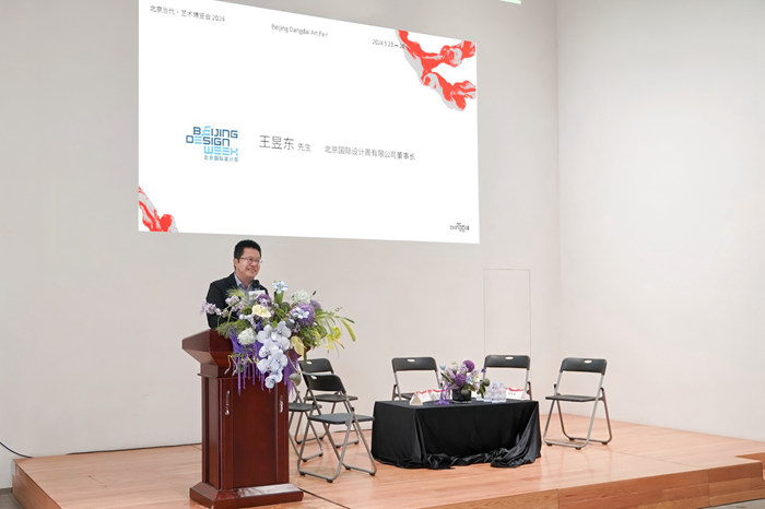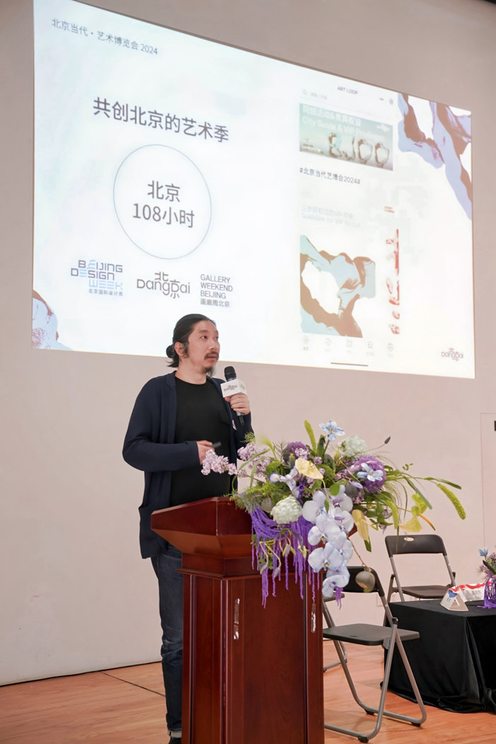 北京當代藝博會聯合創始人和藝術總監鮑棟首先介紹了今年北京當代藝博會的亮點與新貌,以“豐富性”結合“凝聚力”,期待在藝博會的現場凝聚全城和全球的眾藝之力。