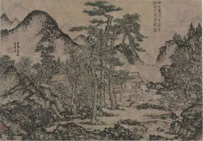 王蒙身處元末明初,這是一個歷史激蕩的歲月,也是中國繪畫轉折的關鍵時期。南宋被蒙古覆滅后,漢族知識分子感受到山河淪喪的悲痛,元代統治者取消了科舉制,郁郁不得志的文人紛紛聚集于江南地區,形成了一個相對自由的文人圈子。時局動蕩導致山水畫在元朝進一步向文人畫發展。王蒙的外祖父趙孟頫明確提出“書畫同源”的概念,反對南宋院體畫的刻板寫實、奢靡工細的畫風,提倡師古、開創以簡率質樸的繪畫風格。
