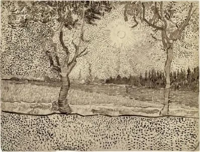 梵高對自然萬物的生命力具有非凡的感悟力,對宏大和微小的事物都有一種新鮮的表達欲望,他擅長用不同的直線、曲線、弧線、點來表現生機勃勃的風景,畫面充滿拙樸的力量。