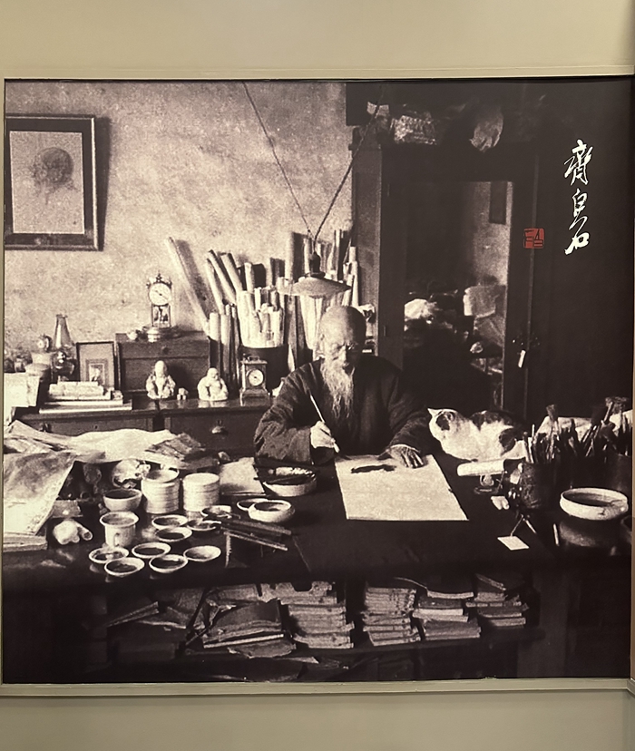現場展示的齊白石作畫與畫室空間照片 攝影/許柏成