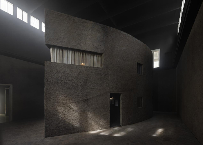 震撼的視聽感受后,回到展廳中央,是搭建起的高高的混凝土墻樓,挑高的空間內,只有頂上幾扇窗戶透進微弱的光線。再次排起長隊,進入蒙塔克的作品—《一個無名者的紀念碑》。蒙塔克將其祖父的故事移植到展覽現場,一個自安納托利亞中部移民到德國的石棉廠工人,后因工作而去世。藝術家結合現場布景與表演,演員在令人窒息的空間內工作、交談、飲食、睡眠.......跟隨音樂和表演一起的,是觀眾吸入鼻腔的灰塵。蒙塔克喚起觀眾的情緒,與巴塔納震撼的“星際穿越”大片形成極大的反差。他旨在通過多元化的故事講述來叩問集體記憶,通過將移民與東德人的生平擺放在場館的中心位置,籍此對后英雄時代的歷史敘述、再現和敘事的追問置于通往工業化時代的“門檻”之上。