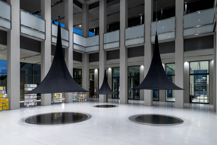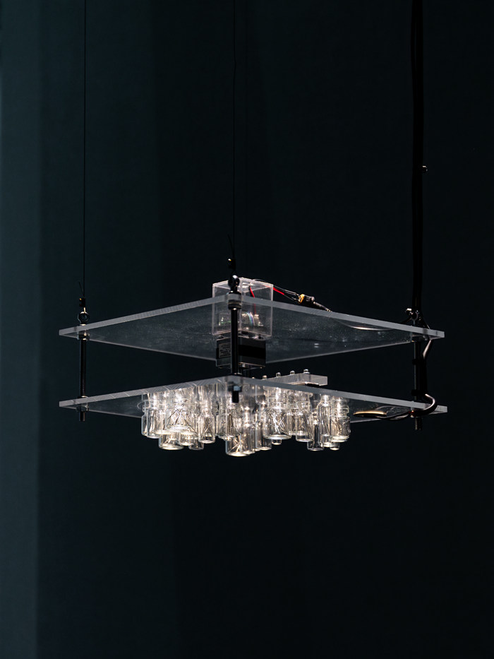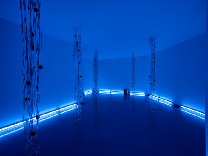 區別于傳統的“白盒子”布展,此次大展貫穿美術館戶外空間、中庭及主展廳空間,以別具一格的呈現方式,引領觀眾進入一場深層意識的聲音旅程。展覽從望及乃至聽及美術館建筑的一刻即拉開了序幕。在美術館的戶外公共空間,觀眾將感受到比爾·豐塔納(Bill Fontana)將靜止的鐘和消融的冰產生的振動而引發的共鳴,而從另一邊前來的觀眾則會聽到蘇珊·菲利普斯(Susan Philipsz)的復調歌聲。在美術館中庭,孫瑋的作品構筑了一個充滿想象的有聲景觀,弗朗西斯·埃利斯(Francis Al?s)、艾梅卡·奧格博(Emeka Ogboh)將城市景觀視作樂譜,而周滔則在夜色中上演了一場間奏的聽覺交流。主展廳以伊曼紐爾·拉加里格(Emmanuel Lagarrigue)的沉浸式聲音裝置為開端,其后呈現埃德蒙·庫肖(Edmond Couchot)和米歇爾·布雷特(Michel Bret)、毛利悠子、加里·希爾(Gary Hill)、王長存、劉窗等藝術家從音樂會、音樂創作到視覺語言開發等多角度的作品。每件作品都旨在發掘聲音與視覺藝術的一個嶄新面貌,并成為聲學旅程的全新起點,為觀眾帶來全場域沉浸式的“清醒夢境”之旅。