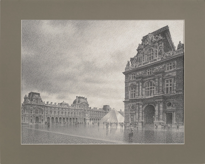 大盧浮宮計劃(1983–1993)中拿破侖庭院金字塔 入口的白天效果圖,巴黎