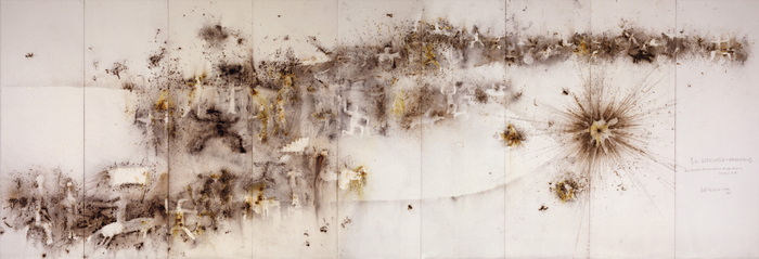 2006 年 火藥紙本裱于木板(九屏)? 蔡國強 鳴謝藝術家