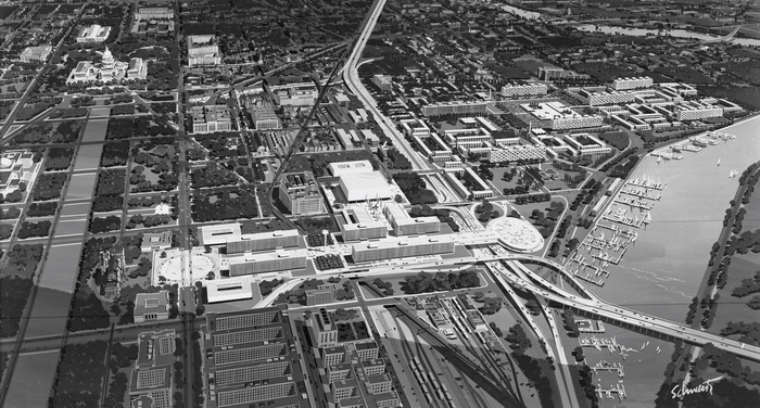 羅伯特·施瓦茨(繪圖師) 齊氏威奈華盛頓西南區都市重建項目(1953–1959)早期方案效果圖