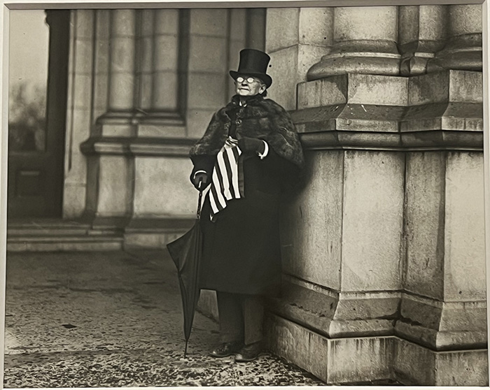 圖中的主角是美國外科醫師、醫學博士、女權活動家瑪麗·沃克,作為美國首位女性軍醫,她曾在南北戰爭期間擔任聯邦軍陸軍隨軍醫師。這張攝影作品在如今看來似乎沒有特別之處,但在一百多年前卻是極其大膽的行為,因為年近80歲瑪麗·沃克沒有穿女性“應該”穿的裙子,她是在出版物上第一位著褲裝亮相的女性?,旣悺の挚艘蚍磳鹘y女性著裝、倡導“理性著裝”而“臭名昭著”,當她于1919年離世時,葬禮上的瑪麗·沃克也是身著黑色西裝而不是連衣裙。在美國歷史上,僅有八位平民獲得過美國榮譽勛章,瑪麗·沃克便是其中之一,同時也是迄今為止獲得該獎章的唯一女性。