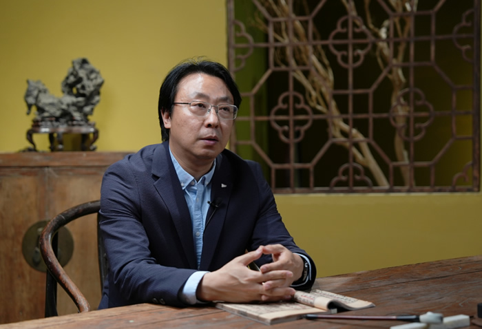 展覽舉行期間,我們邀請中央美院于洋教授來到展覽現場,請他結合展覽談談“盛世修典”和“久久為功”主題展的重要意義,同時深入解讀“讀書”“耕讀”主題在中國古代文化傳統中的價值意義,以及“讀書”“品畫”對于當代人精神生活的重要作用。