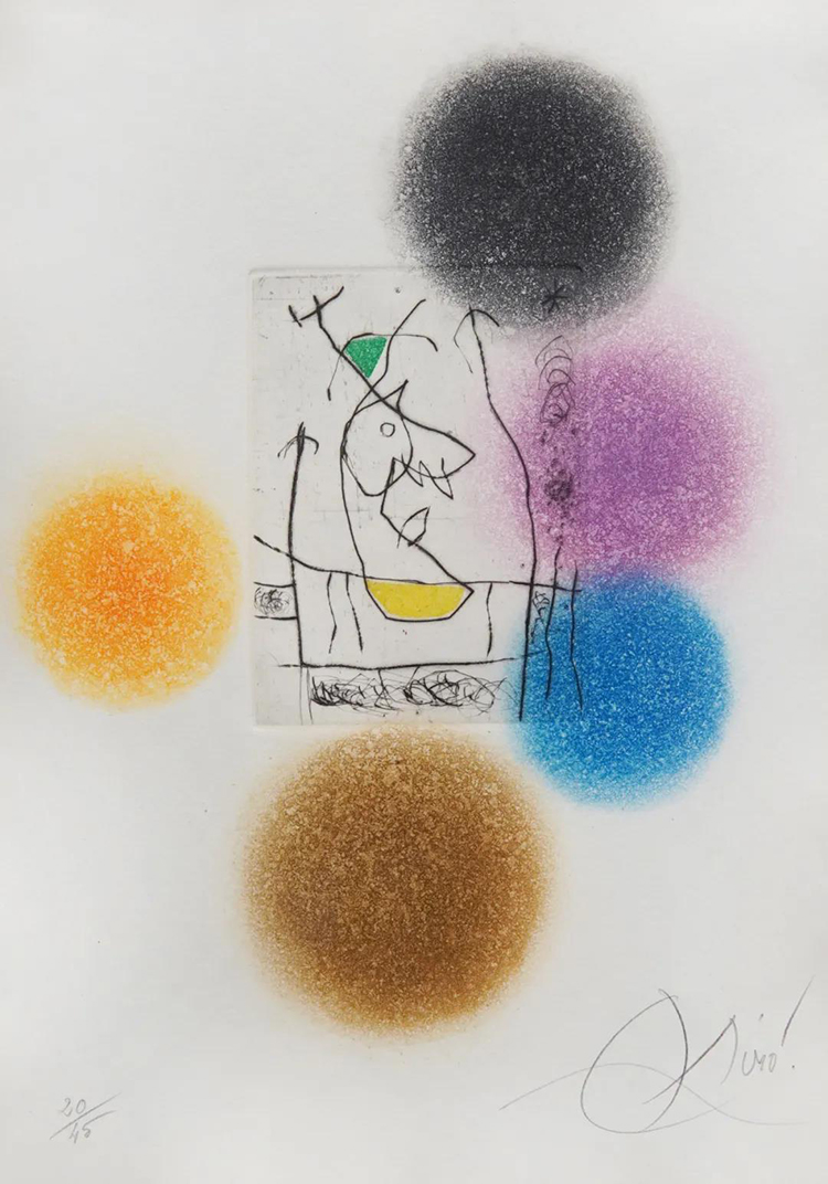 胡安·米羅《斯皮拉爾和米蘭達》 版號:20 45 1979銅版并手工上色 28.3x18.5cm 藝術家親筆簽名【由錦瑟畫廊提供】