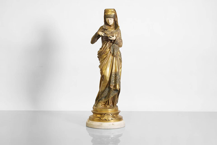Carrier.Belleuse《讀書者》19世紀晚期 青銅鎏金雕塑簽名雕塑 高61cm【由華麗之眼提供】