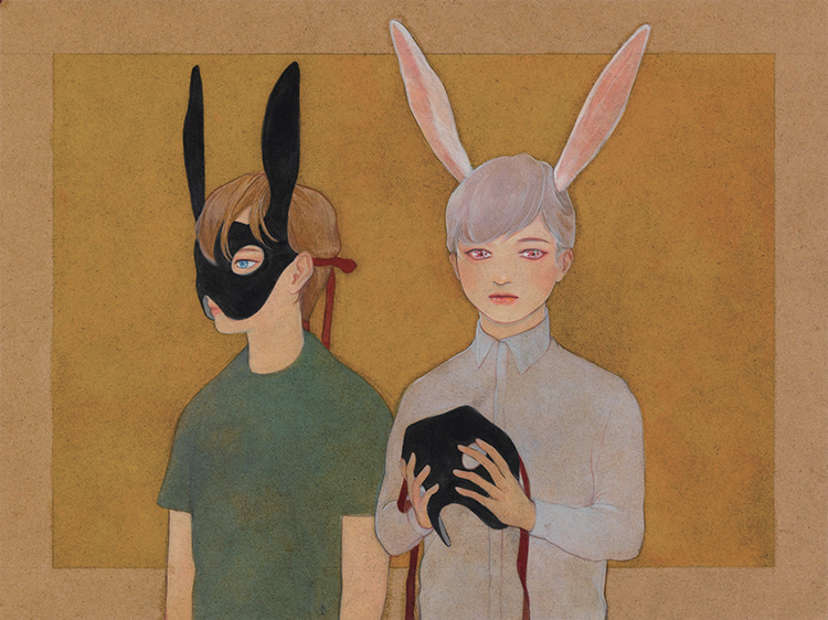 Ava An 《精靈與面具》 2014 布面油畫 26x26cm【由未知藝術提供】
