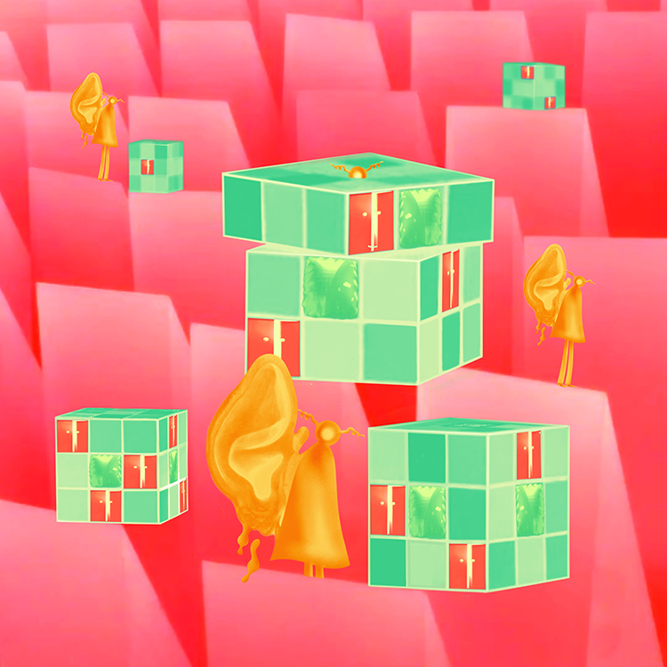 魏陽陽《彩色的舞臺》 2021 布面油畫 50x50cm【由ArtL Gallery 提供】