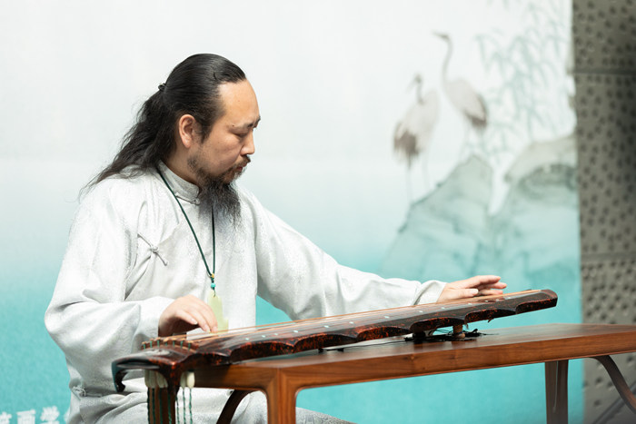 邵天澤先生開幕式現場撫琴