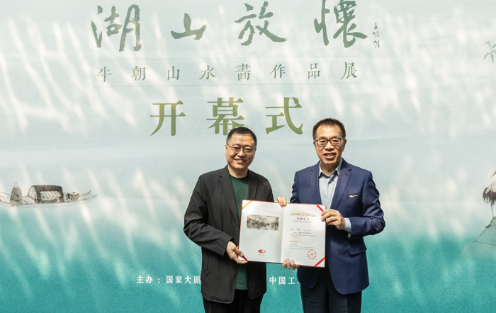 5月11日,由國家大劇院、北京畫院、中國工筆畫學會聯合主辦的“湖山放懷——牛朝山水畫作品展”開幕式在國家大劇院藝術館(西廳)舉辦。國家大劇院院長王寧、北京畫院院長吳洪亮、中國工筆畫學會會長陳孟昕、全國政協原常委、北京畫院原院長王明明,中國美術家協會原分黨組書記、駐會副主席徐里等嘉賓出席開幕儀式。