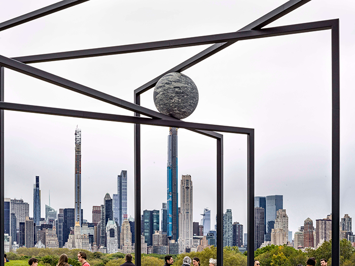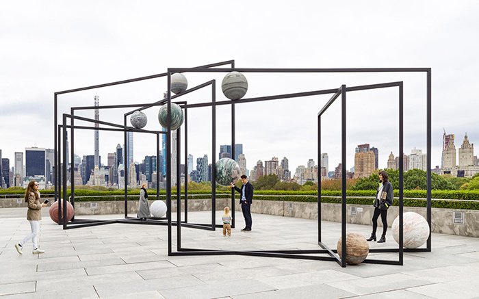 2019年,克瓦德受邀為紐約大都會藝術博物館的屋頂花園設計年度裝置,創作了備受矚目的《ParaPivot》。該作品由幾何形狀的黑色鋼框架構成,框架之間懸掛著幾個巨大的巖石球體。作品整體形似一個微縮的太陽系,球體在框架中自由懸浮,與曼哈頓的天際線交相輝映。借此作品,克瓦德探討了重力、物質的狀態轉換以及人類在宇宙中的渺小存在,讓觀眾在漫步中體驗到時間和空間的相對性和多維度。