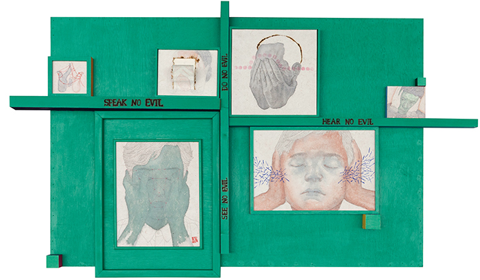 樊杰穎《石窟造像系列》30x40cm 油畫卡板、墨、丙烯 2023
