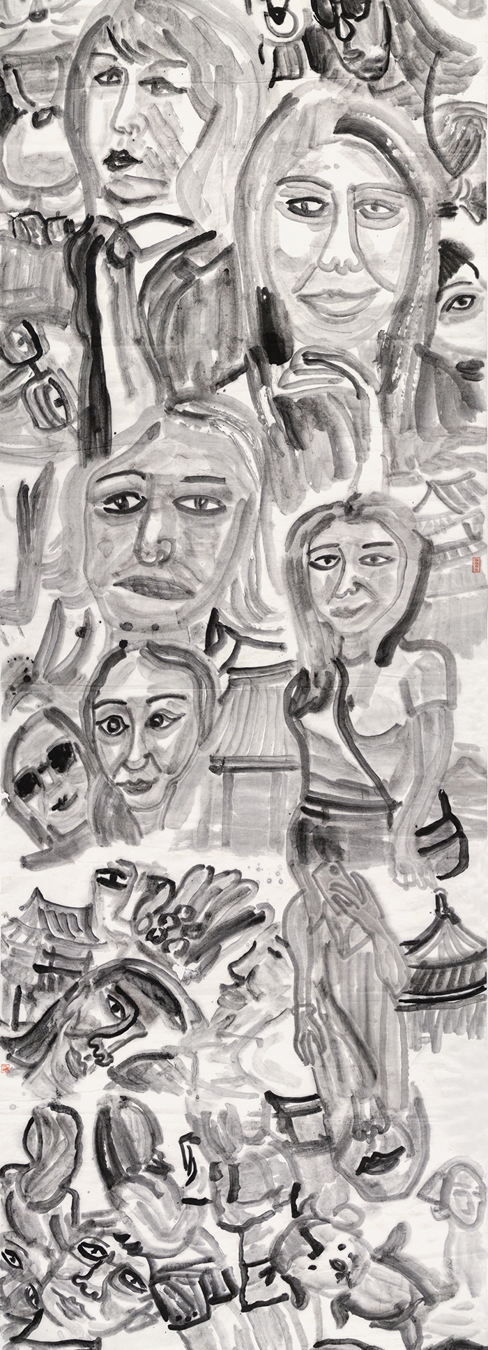 徐航《面孔》1000.22X97cm 紙本水墨(局部)
