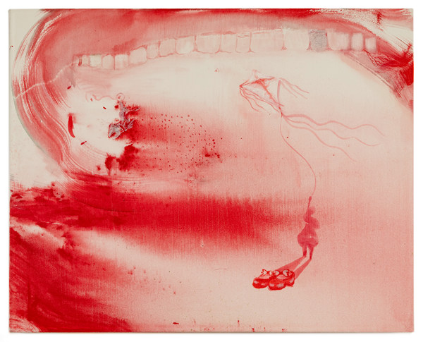 薩巴·法霍德尼亞,我的紅鞋,你的銀齒,2024.布面丙烯,40.6 x 50.8 cm ?薩巴·法霍德尼亞,致謝否畫廊