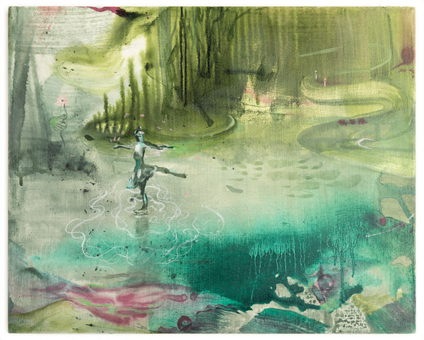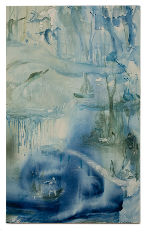 薩巴·法霍德尼亞,她去藍玫瑰的橋,2024. 布面丙烯,106.7 x 66 cm ?薩巴·法霍德尼亞,致謝否畫廊