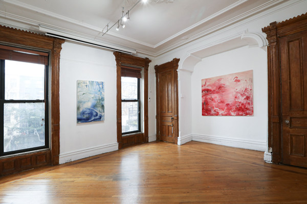 《她去藍玫瑰的橋》和《花瓣飄落,玫瑰佇立》在“薩巴·法霍德尼亞:花瓣飄落,玫瑰佇立”展覽現場” ?薩巴·法霍德尼亞,攝影:Ken Lee,致謝否畫廊