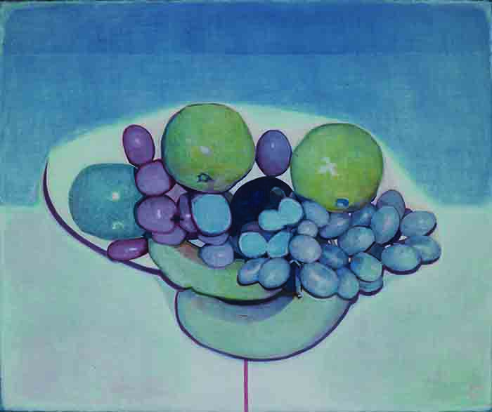 唐永祥 《白色和藍色上有一些水果》 2014年 150cm×180cm 布面油畫(圖片由藝術家和魔金石空間提供)