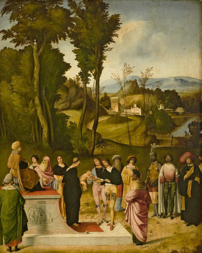 《摩西的考驗》喬爾喬內 1502 – 1503 木板油畫 103 x 86厘米