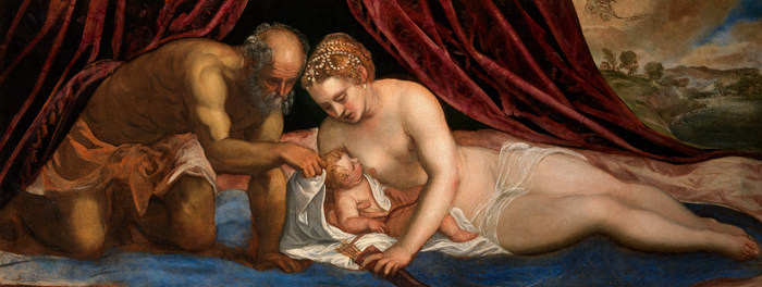 《維納斯、丘比特與伏爾甘》 雅各布·羅布斯蒂,又名丁托列托 1550-1555 布面油畫 85×197.4cm