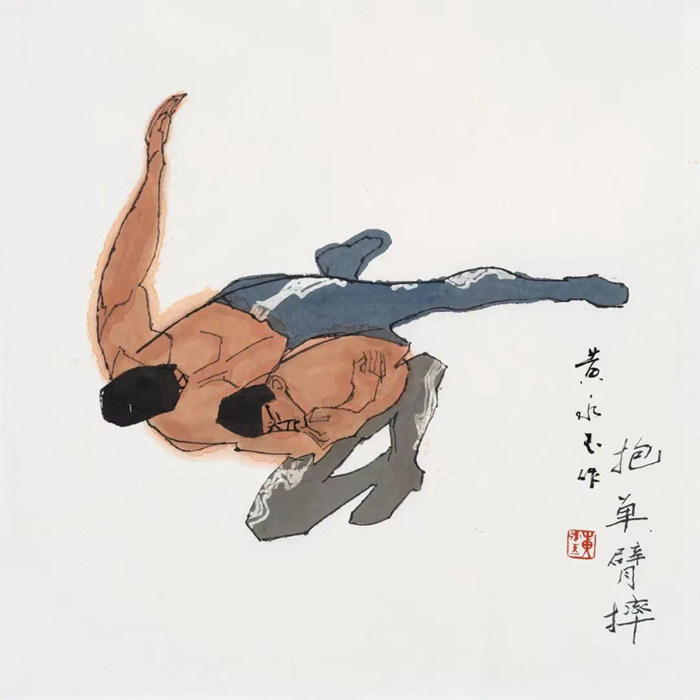 抱單臂摔 紙本設色 69cm×69cm 2017年