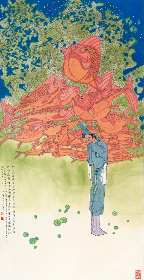 黃永玉先生最后一幅作品:小夜曲 紙本設色 138cm×69cm2023年