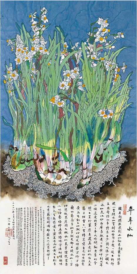 黃永玉 年年水仙 137.5cmx68.5cm 2018年