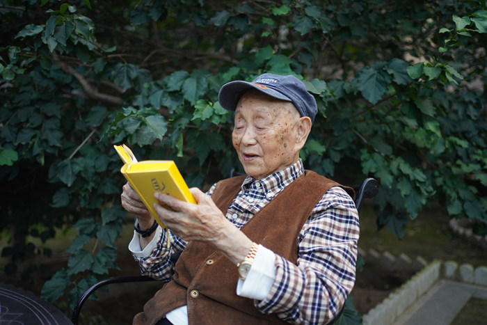 黃永玉生前在讀自己的《見笑集》 攝影:瞿中華