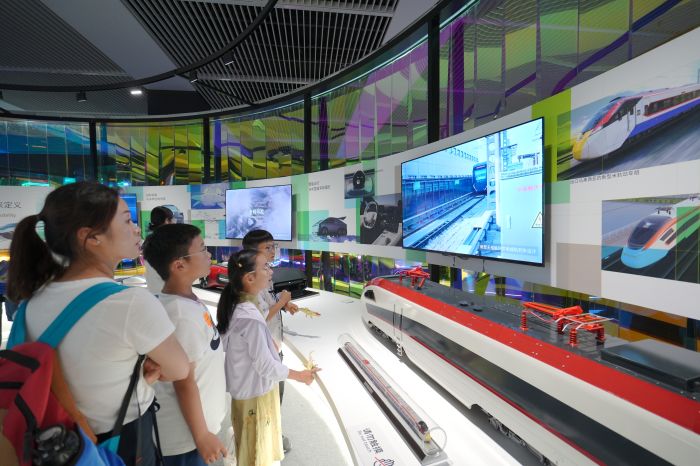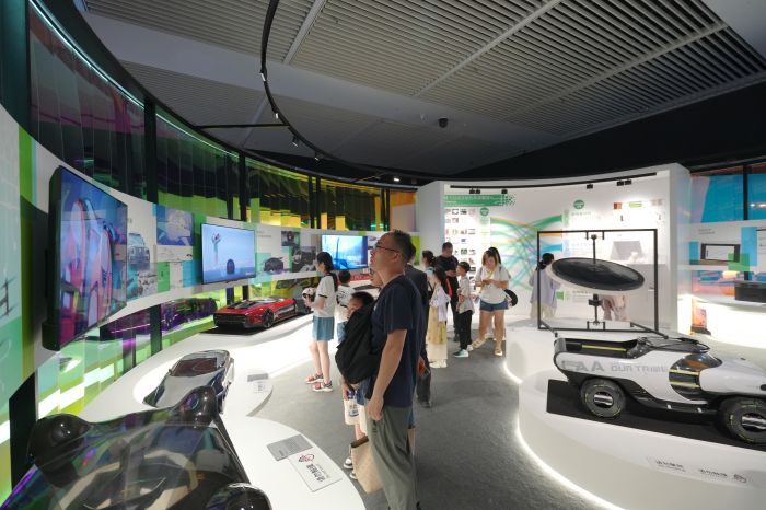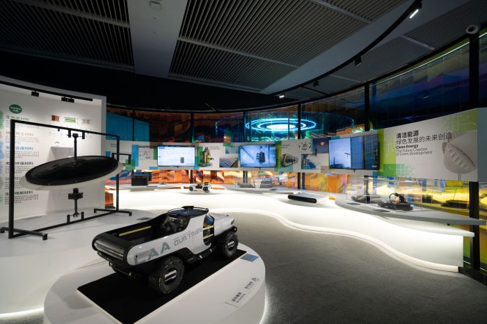 以上汽集團的名爵Cyberster純電概念跑車、中國中車的新一代動力集中型動車組等為代表的作品通過展示新能源汽車的發展景象、中國動車所體現的裝備制造實力、清潔能源的轉化方案,以及材料的綠色化設計探索,呈現出科技進步在實現循環發展方面的無限可能。