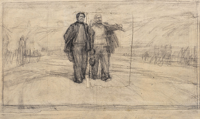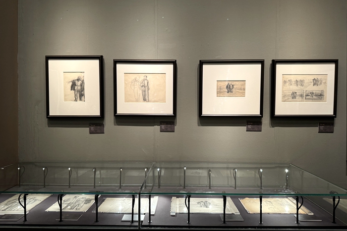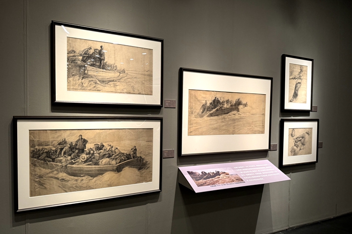 鐘涵先生早年求學于清華大學,后轉入中央美術學院學習并留校任教。改革開放后,他訪學歐洲,曾擔任央美學術委員會主任。無論創作、教學、研究、管理,鐘先生的嚴謹與浪漫是融于一身的。如何更為準確而鮮活的概括鐘涵先生的成就,并為本次入選文化和旅游部全國美術館館藏精品展出季的展覽起個恰切的題目,真成了一個難題。正在躊躇間,在一次與范迪安主席的交流中,他提到曾為鐘先生的展覽起過一個題目:抹去重來六十年。這60載,是指1963年鐘先生從中央美術學院油畫研究班畢業算起,到去年去世,整整60年。一個甲子的“抹去重來”是先生對于完美的無限靠近。藝術很難,難在還有可能更好。因此,本次展覽我們也將重點放在《延河邊上》《東渡黃河》《浪里搖籃》等作品的前期圖稿與作品的對應研究上,不僅呈現他藝術中的所謂“土氣”,隱喻先生對黃河的愛戀,與對船工的深情,更試圖凸現他對每一幅作品的反復研究、描繪,乃至極致的“抹去重來”。